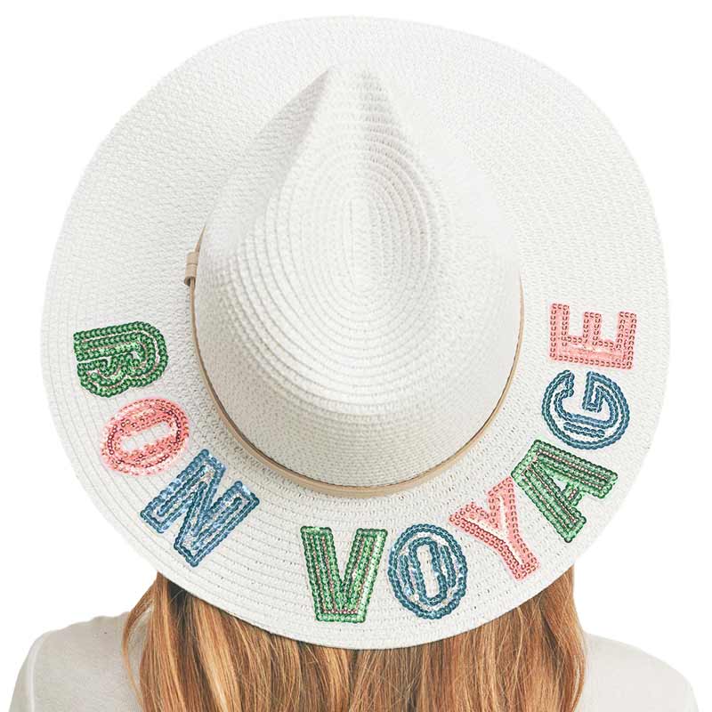 - Bon Voyage Sequin Message Straw Panama Sun Hat