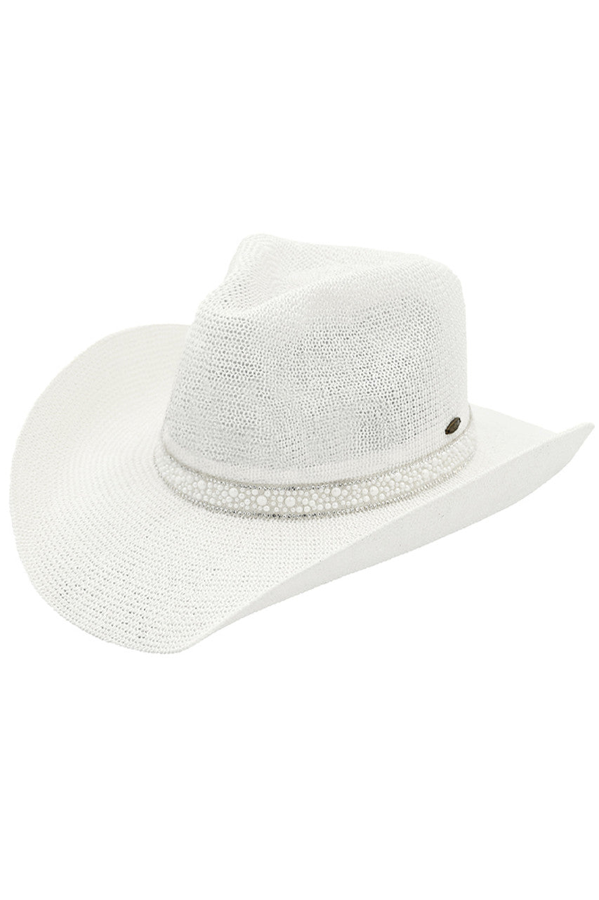- C.C Cowboy Hat with Black Pearl and Rhinestone Trim Band