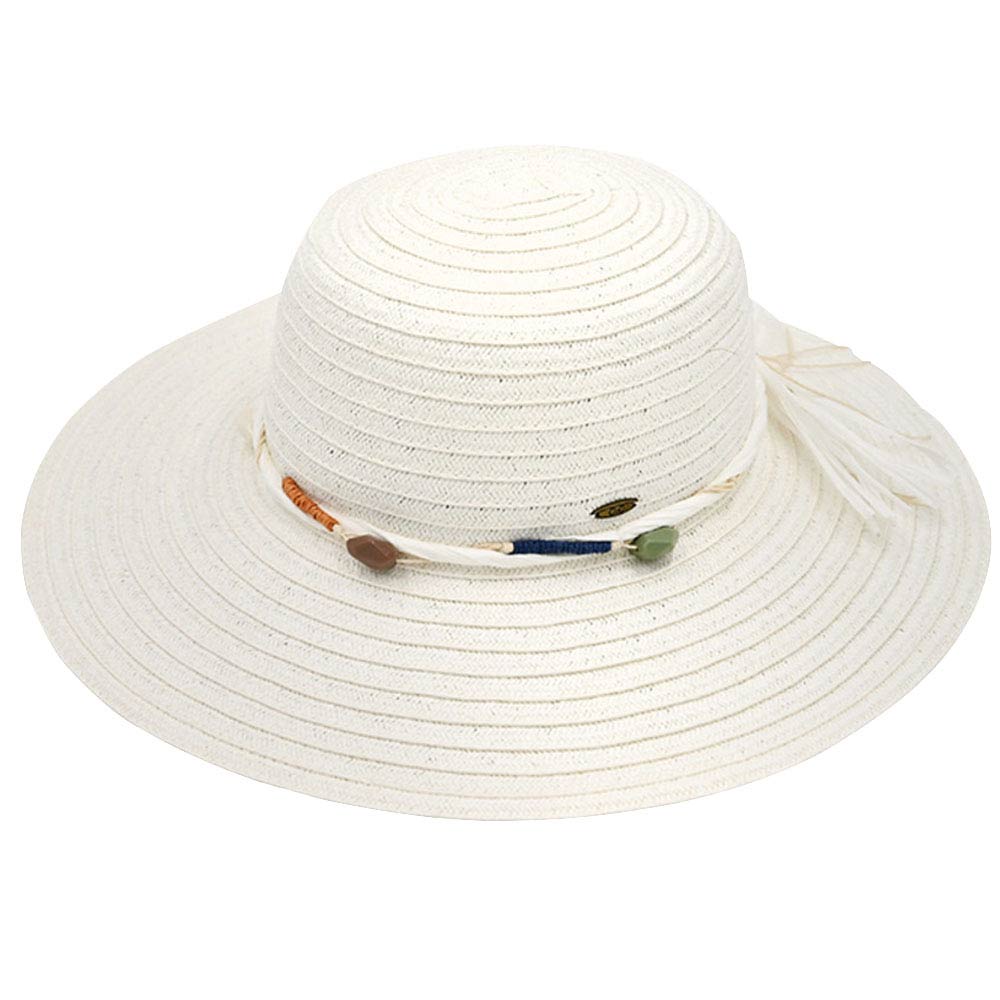 C.C Wide Brim Stone Trim Band Sunhat, keep your styles on even when you are relaxing at the pool or playing at the beach. Large, comfortable, and perfect for keeping the sun off your face, neck, and shoulders. Perfect summer, beach accessory. Ideal for travelers who are on vacation or just spending some time in the great outdoors. A great sunhat can keep you cool and comfortable even when the sun is high in the sky. No matter where you go on the beach or at summer parties it will keep you cool and comfortable. Perfect gifts for Christmas, holidays, or any meaningful occasion.